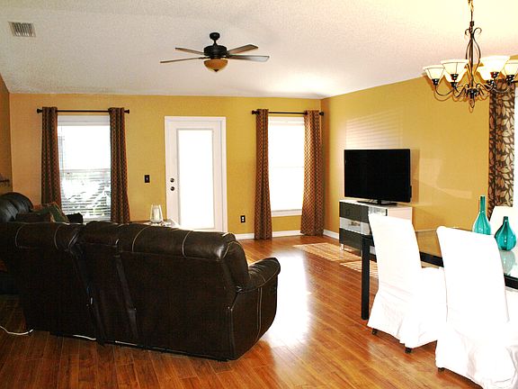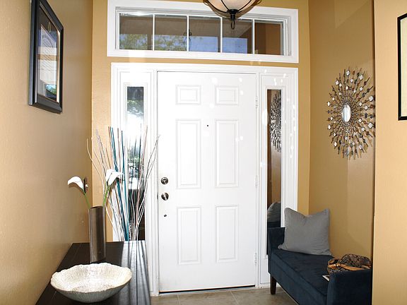 IMMACULATE HOME! Impeccably maintained 4 bedroom home in desirable neighborhood. Split floor plan w/ vaulted ceilings and plant niches. Beautiful custom crown molding on windows! Upgraded light fixtures and fans throughout. Large kitchen with upgraded cabinets, new back splash and even has a double oven! Also features a breakfast bar that opens to the living/dining combo area. French doors lead to the patio area with a relaxing view of the serene neighborhood lake.