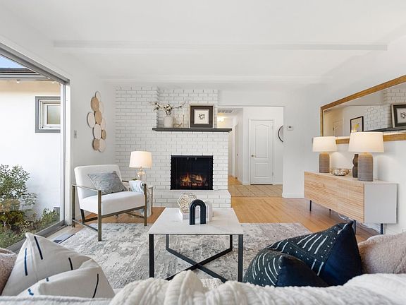 Nestled at the end of a private lane, this custom home sits on an expansive 14,500+sf lot in San Carlos. Fresh interior and exterior paint and newly refinished wood floors, the home features four spacious bedrooms, including two ensuite retreats. The updated kitchen boasts a light-filled breakfast nook, while the living room, complete with a cozy fireplace, flows into a formal dining room offering picturesque views of the yard. A family room with custom built-ins and a full-size laundry room add to the home's convenience and functionality. The oversized two-car garage, with a newly epoxied floor, is complemented by an expansive driveway and additional covered parking. Located in San Carlos, The City of Good Living, this home provides easy access to a vibrant downtown filled with fine dining, boutique shops, coffee spots, parks, a library, and a community center. Commuters will appreciate proximity to CalTrain and major tech hubs like Snowflake, Google, Meta, Oracle, and Stanford, as well as convenient access to San Francisco and Silicon Valley.