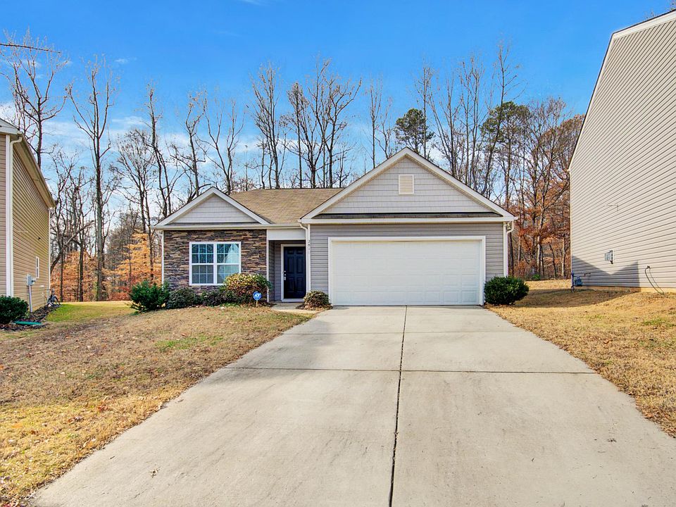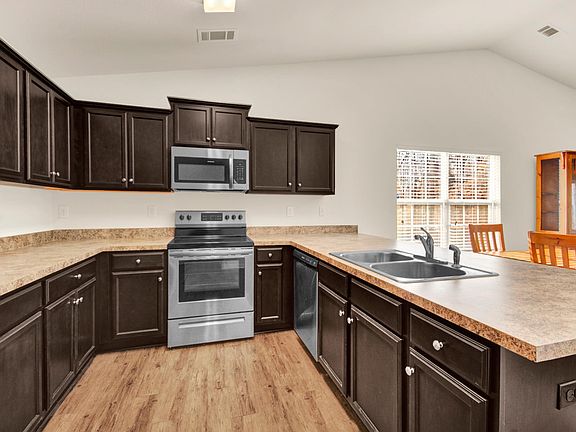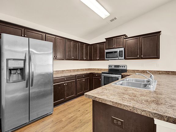 Ranch style home offers 3 bedrooms, 2 baths with 2 car garage. Oversized kitchen features upgraded cabinets, stainless steel appliances & ample amount of counter space w/ additional bar seating. Open concept floorplan w/ vaulted ceiling and gas fireplace. Home located in a cul-de-sac backing to wooded area. Walk to the neighborhood playground and basketball court. 12+ Months