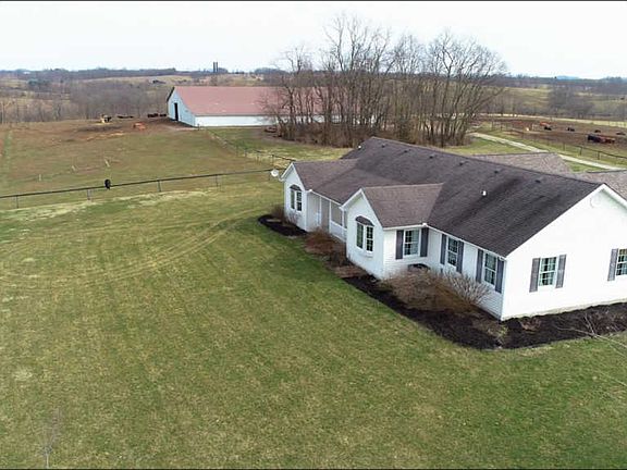 Serenity AND location! Perfect for horses. One hour from Lexington, one hour from Cincinnati. 37 +/- gently rolling acres with 5 paddocks, a massive barn with attached 150x80 indoor riding arena, and an amazing home. Custom built ranch on a finished walkup basement has an abundance of living space, with an attached 2 car garage. Built in 2000 and remodeled more recently, you'll find luxury inside - Custom cabinetry, Quartz countertops, mudroom addition, hardwood and tile throughout, formal living room and home office, a master suite BUILT for relaxation and closets you can get lost in - not to mention an entertainment center in the basement that includes projector, separate kitchen, living space, and full bath and bed, great for guests or Mother in law quarters. The barn: Potential for 20 stall setup, or remove for storage space. Indoor arena is massive. Fencing and waterers throughout for horses and livestock. An all around quality, serene, productive farm.