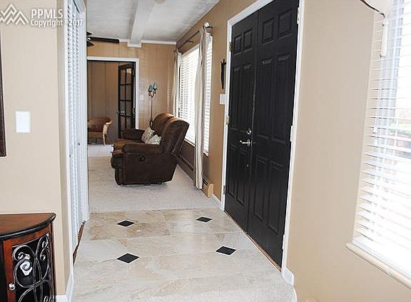 UPDATED & UPGRADED throughout, this Valley Hi-Golf Course custom rancher features fantastic Pikes Peak and Front Range views on almost 3/4 acre corner lot in this hidden charming and best kept secret golf course community. Come inside to this pristine open main level living featuring beautiful tile entry, granite slab kitchen with tile floors and updated cabinets. All baths have custom designer sinks and custom tile work. Designer paint throughout with custom window treatments.