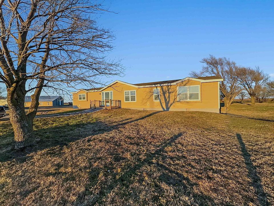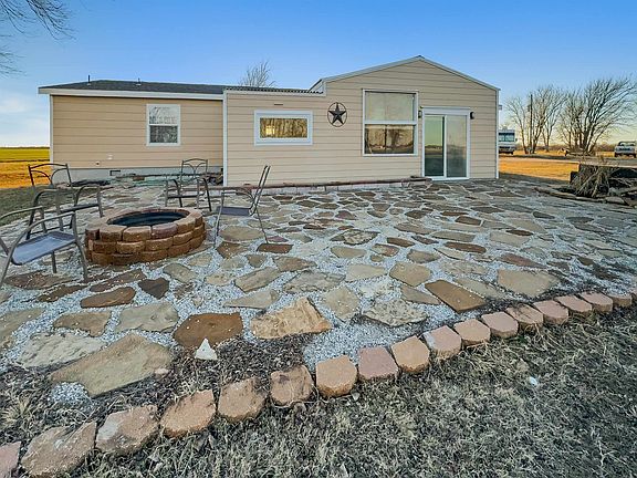 Perfect location just off the paved road. Easy access to I35, Cessna, and Kansas Star Casino. When you step into this home you'll be delighted by the open layout and all the natural light that floods the main living area and formal dining. The Owners suite is generous and includes double sinks, soaker tub, water closet/shower, and walk in closet. Two additional bedrooms each have their own bathrooms! Yes, you read that right! Each bedroom has it's own full bath! The kitchen has a degree of separation yet opens to the main living area. Functional with loads of cabinet space, built in desk, and appliances just ready for all the cooks in the kitchen! Take the gather out to the sunroom where you will find a fantastic entertaining area for entertaining with a kitchen bar and Blackstone cook surface. Enjoy evenings on the stone patio area and listen to the water feature put off peaceful sounds or stroll down to the pond and cast a line. Pray for rain first. The home has a 2 year old roof with 50 Yr. Heritage shingles. This property also includes a 36x60 workshop that has heating and air, concrete floors, 200 Amp service, area for wood working or welding, loft, and an additional living or office space that is waiting for a creative thinker to turn it into something fabulous! Don't wait . . . call the listing agent today for your personal tour!