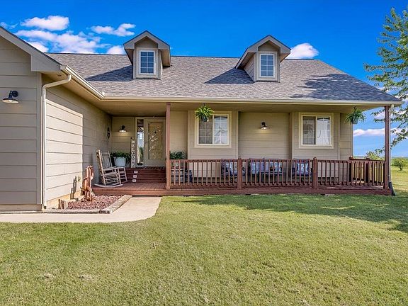 The Home in the Country you've been looking for! Beautiful Ranch Style Home on 4.68 Acres! Just off paved roads with easy access to highways. Come plant your gardens and add your farm animals on Fully Fenced Pasture! Enjoy the Night Skies on the Large Deck or Porch Sitting on the Large Front Porch**Step into Beautiful Woodwork & Vaulted Ceiling Open Floor**Relax by Woodburning Fireplace this winter and Enjoy Entertaining in the Spacious Kitchen with Breakfast Bar & Large Dining Room with Bay Windows**Master Suite with Coiffured Tray Ceiling, Private Master Bath with Double Sinks & Walk in Closet! 3 Bedrooms on Main Level with Bonus Room in the Basement that could be used as an Office or nonconforming Bedroom**3 Full Baths, Finished Basement with Pool Table, Projector & Screen are negotiable**Save on Utilities with Private Water, Rural Water Available for hook up**New Roof in 2022, New Culligan Water Softener in 2020, New Hot Water Tank 2023, New Luxury Vinyl Floors on Main Level in 2020**Energy Efficient Geo-Thermal All Electric Home**Plenty of Storage Space and Room to Roam! Enjoy the Peaceful Country but within minutes of City! Don't Let this one pass you by! Call or Text for your Private Showing!