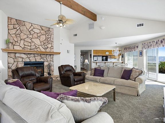 Stunning Panoramic Views from this lovely and well-maintained home! Just a straight shot up and minutes from the valley floor to this incredible find! Approx 2392sf 3B/2B + Office! On approx 11.5 rolling acres!! Perfectly situated and tucked back off the road for privacy.Split wing floor plan with a generous living room donned with wall-to-wall windows allows for unparalleled views and boasts of natural light. Beautiful rock masonry Fireplace is the centerpiece to this great space with room to entertain. Bright Kitchen opens to the dining area, in view of the living rm with potential to be expanded. Conveniently positioned Laundry Rm with additional pantry storage.Spacious Master Suite features a bonus room just off with plantation shutters perfect for an office, home gym, reading rm, nursery...many possibilities. Master bath with an air-jet tub and separate dual vanities.Two generous sized guestrooms and bath on the other side of the home allows for privacy.Bonus Mudroom with outdoor access just prior to the main entry.Oversized 2 car garage with shelving. Recently painted exterior and over $13,000 of new concrete surrounds. Central HVAC. Rain gutters installed. Charming Gazebo for evening cocktails while watching the warm twinkling lights below. Expansive & rare hand laid paver stoned driveway, excellent for winter and space enough for a multitude of cars. RV parking. Lower portion of lot has room for a Guest Home, Workshop or Barn. Perfect terrain for your private hiking trail! Frequented by Elk and Wildlife. Fantastic for bird watching. Potential to subdivide.Private paradise sanctuary, offering the rarity of both stunning sunrises and sunsets. This home has it all! Priceless at $549,000!