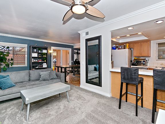 Beautiful and cozy, this single-story, 2 bed/2 baths lower unit carries the pride of ownership throughout. Tile floors, newer carpet, recently painted walls, new crown molding and updated lighting make this a perfect home. Lots of natural light with newer vinyl shutters for privacy. Kitchen and bathrooms are in great condition. Both bedrooms have generous closet space, with additional storage available in the one car detached garage. The outside patio is good-sized and private. Full-sized washer and dryer area in the patio. The neighborhood is conveniently located near the 5 and 73 freeways, a wide variety of shopping, restaurants, and great schools. The community offers two pools and a clubhouse. CONDO IS FHA APPROVED!