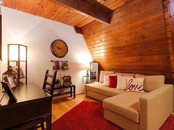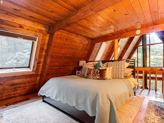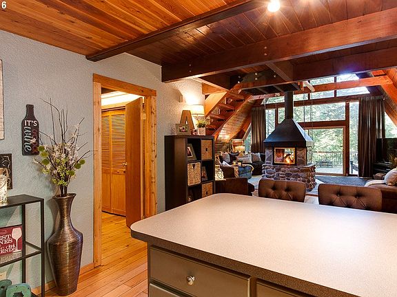 Stunning A-frame is what living on The Mountain is all about. Decorator interior, 360-degree propane/wood fireplace to warm fingers & toes after outdoor adventures. 2 br/2 bath/extra sleeping loft in main house, PLUS guest quarters w/ private full bath, 220V shop area, 2-car garage, room to hang out. Serene spot, surrounded by nature.