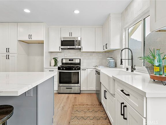 Welcome to this renovated and turnkey Single Family Detached home overlooking the hillsides and trees of Mission Viejo. This home sits on a desirable cul de sac location in the 55 and older community of Casta Del Sol. This is the popular Rosa model with 2 large bedrooms and additional den that can be used as a third bedroom that sits just off the open concept living room. Very rare and desirable inside laundry room! The new dual pane windows offer bright light filtering into the large living space and opens to the beautifully styled custom kitchen. In the kitchen you’ll find new stainless steel appliances, extra-large island and stylish tile backsplash to complete the designer style. Both bathrooms have been fully updated with new cabinets, tile, and light fixtures. The living room features vaulted ceilings, recessed lights and a fireplace. Light colored luxury vinyl plank flooring, designer paint and vaulted ceilings make the living space welcoming to friends and family. The private greenbelt behind the home gives maximum privacy and sunlight. Enjoy access to Lake Mission Viejo and the Casta Del Sol HOA that includes clubs sports, pickleball, tennis, swimming, shuffle board, athletic club, relaxing and so much more!