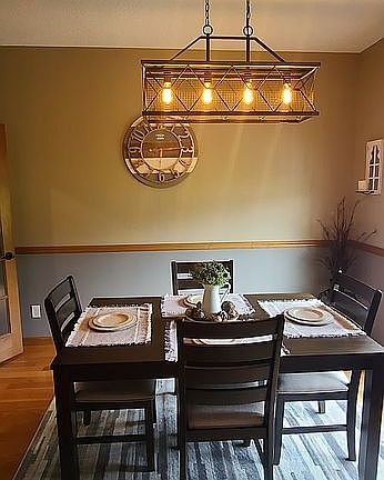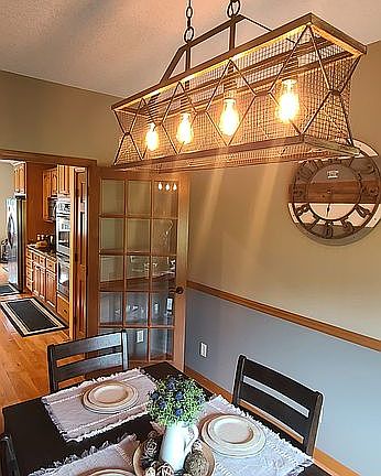 Our home is a ranch home built in 2006. It has vinyl side with a brick front and stone corners. There is hardwood floors in the kitchen, dining room, and breakfast nook. Carpet is in the living room and 3 bedrooms and basement, with ceramic tile in all bathrooms. Our home is located in the Montmorency School District, and is only 3 miles from home.