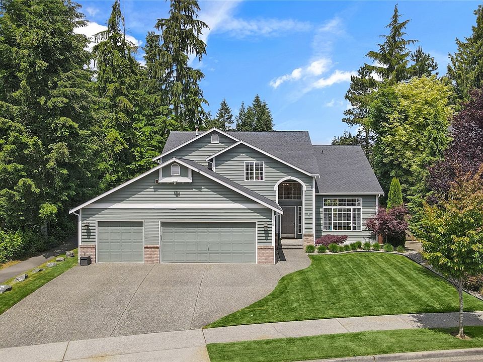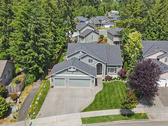 Fantastic resale in the coveted Cascade Highlands! Pride of ownership throughout and priced below recent neighborhood sales. Vaulted entry with spindle staircase and open floor plan with light and bright living spaces. Beautifully updated kitchen with Corian counters, tile backsplash, stainless appliances, and double ovens. Kitchen opens to the family room with gas fireplace and views of the lush green oasis in the backyard. Updated baths, laundry room and incredible primary bath remodel add to the upgrades of the home. Spacious and private backyard with sprinkler system, fully fenced, 10 x 10 storage shed, and borders greenbelt. Conveniently located just blocks from schools, mins to Silver Lk, shopping, dining, community transit and I-5.
