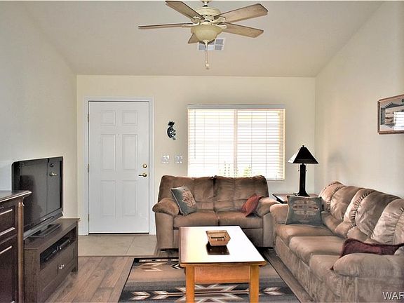 Immaculate like new 2 bedroom 2 bath single level town home in DR Horton Square. Most furnishings included. Cozy living room, patio off of eat in kitchen, beautiful wood style flooring throughout with large ceramic tiles in kitchen, ceiling fans, window coverings, stacked washer/dryer, private patio,attached double car garage that makes access a snap, gated quiet community with pool & park. Located minutes from the Colorado River & Laughlin Casinos. Buyer to verify sq ft., utilities, assessments, taxes & flood plain.
