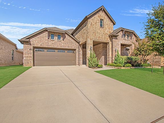 Welcome home to this beautiful, move-in ready home in the sought-after Mansfield ISD! This single story home residing in the wonderful Twin Hills community features an open floor plan, high ceilings and has upgrades galore. Enjoy morning coffee on the front covered porch. Upon entry, the mud area, utility room and two bedrooms are separate from the primary suite. Office flex space just off the living room. Living room has a fireplace and opens to kitchen. Cooks will love the kitchen with granite countertops, island, gas range, double ovens, stainless steel appliances, plenty of cabinet space and walk-in pantry. Primary suite has private access to the backyard, en-suite bathroom with double vanities, walk-in shower with rainfall shower head, garden tub and walk-in closet. Relax on the backyard covered patio. Backyard has plenty of room for activities. *Available now, refrigerator included!*