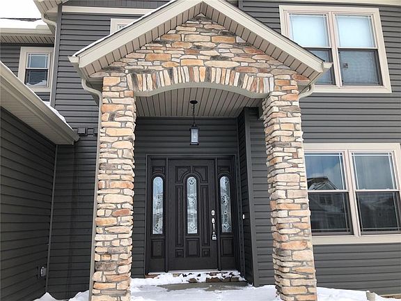 A WOW Factor home with never ending amenities! From the grand arched entry way, to the Custom granite kitchen with brushed stainless appliances, and center island. Vaulted ceiling living room with a stone gas fireplace with hearth. Impressive first floor master bed and bath with a walk in tile shower, double bowl vanity sinks, and tiled accent wall. Oasis setting backyard with patio, built in fire pit backs up to the woods of 21 acre walking Trails in Summit's Trails at Five Points subdivision.