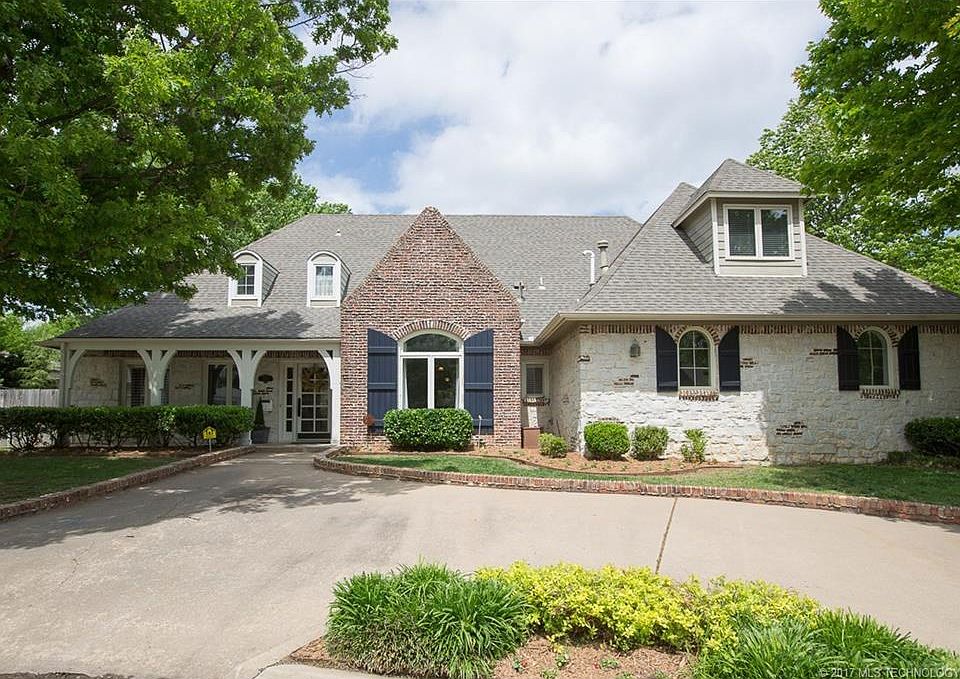 Beautiful Country French home in Tulsa Midtown. New paint & carpet throughout house.Beautiful entry w/ wood floors, tall ceilings & crown moldings. Formal Dining w/ cathedral ceilings, Formal Living w/ can lights, crowns & high ceilings. Kitchen opens to family room w/ fireplace. Kitchen has stainless & granite. Lg master