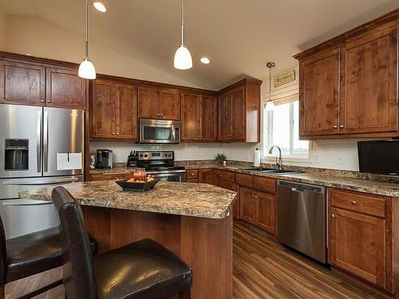 This beautiful multi level home located in Northeast Bismarck just 3 blocks from Legacy High School features a spacious open floor plan including vaulted ceilings, an island, stainless steel appliances, a 12 ft x 12 ft balcony off the dining room, 2 bedrooms, a bathroom featuring a double vanity, a laundry room and a master suite including a full master bath and walk-in closet just steps away. The walk-out basement is a fully finished that leads out to a 12 ft x 40 ft lower deck perfect for summer evening entertaining, with a spacious yard including a play set. The basement features a rec room with an electric fireplace, dry bar with full refrigerator, a false book case leading to the perfect play area for younger children, 2 bedrooms with one including a second electric fireplace, and a beautiful 3/4 bath with a double vanity. This must see home also features a 3 stall garage including an after market phone based entry system. Single family home in Northeast Bismarck