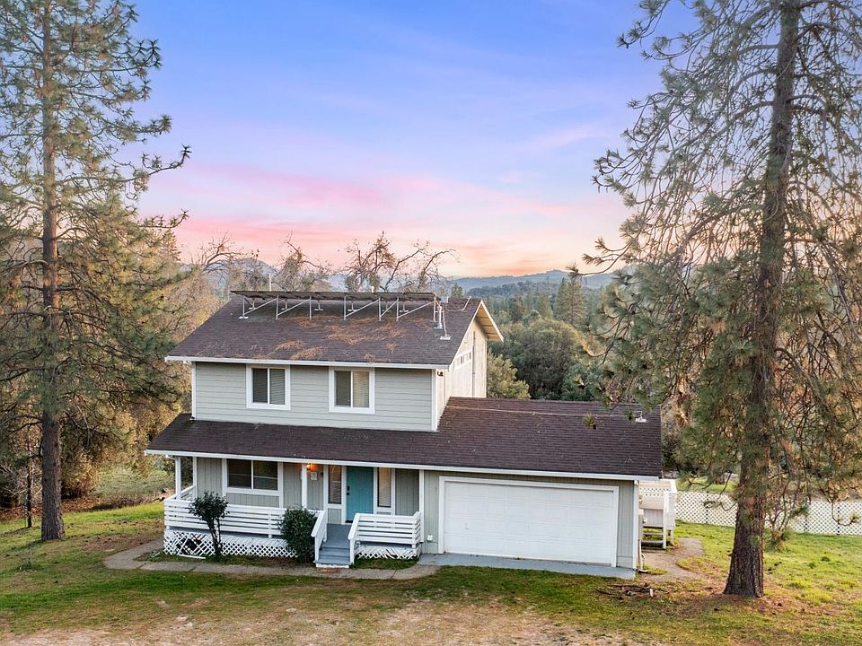 Come see this beautiful fully furnished mountain home set on just over five acres in the Sierra Nevada Mountains. As you enter, the living room to your left features a cozy fireplace, perfect for gathering during cold winter evenings, and flows into the dining room with french doors that open onto the outdoor deck. To the right of the dining room is the kitchen, complete with granite countertops and an apron-style sink. The main level also includes a half bath and a laundry room that leads to the two-car garage, which is currently being used as a game room and includes an additional washer and dryer. Upstairs, you will find three nicely decorated bedrooms and two full bathrooms. Step outside onto the deck to enjoy breathtaking views of the surrounding forest and mountains, along with stunning sunsets, with ample space for a barbecue and outdoor furniture conveniently located near the kitchen for outdoor dining. For added peace of mind, the home is equipped with a camera setup, smart door lock, and smart thermostat that can all be operated remotely. The home is being sold fully furnished, making it a turnkey opportunity to continue operating as a vacation rental or to enjoy as a private vacation home for gatherings with family and friends.