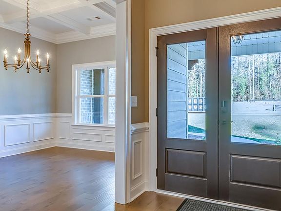 The "Bainbridge" Plan is perfect for those who prefer elegance and space in the convenience of one level. This 4 bedroom, 3 bathroom plan features a sweeping great room and kitchen area that is perfect for cooking while also entertaining. A separate dining room is located at the front of the house connecting to the elegant foyer entry flowing into the open kitchen and great room. The kitchen features an attractive granite island that has plenty of seating space perfect for serving food while also entertaining guest in the great room. The grand master suite provides a large private space along with a connecting bathroom complete with double vanity, separate shower, soaking tub and abundant storage space in the large walk in closet and linen closet. Three more bedrooms complete this floor plan, all with plentiful closet space along with two full bathrooms. This well laid floor plan can accommodate the space needed for a big family all in the space of one floor.