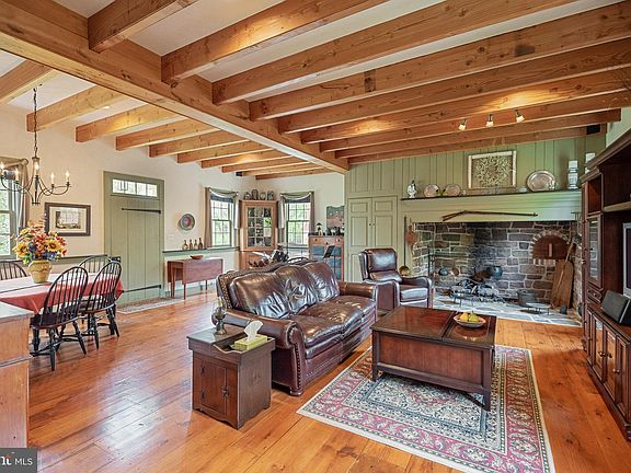 Exceptional opportunity to own a piece of history once a part of the 1,000 acres William Penn granted to John Shires in 1682. This historic and enchanting property authentically refurbished and renovated features 3 bedrooms, 2 bathrooms, 5 fireplaces, a well house, garden shed, an enormous barn with a well-equipped work shop, a 2 car garage with a spacious area above that could be used as living space all situated on nearly 2 acres of beautifully landscaped grounds in a well-established neighborhood. The first level features a large custom designed great room addition with a walk-in stone, brick and slate fireplace 10+ ceilings, pumpkin pine flooring, built in cabinetry, and recycled barn wood which blends seamlessly with the historic character and quality of the home. Through the front porch entryway, a renovated kitchen with slate tile backsplash, Corian counters, and a custom designed island is nicely situated, the dining and living room areas each have brick fireplaces, built-in cabinetry, and a staircase to the second level. The mudroom area with 2 closets, a full bathroom and a second front entryway offers plenty of space for everyday outwear and storage. On the second level you'll find a master bedroom suite with a beautifully renovated master bathroom that has an antique tub, shower, double sinks, built-in storage, stairs to a sitting area on the third level, and 2 additional bedrooms complete this level. The house is situated down a long driveway surrounded by gorgeous flowering trees, flower and vegetable gardens, brick and slate walkways, a large barn with an incredible workshop, 2 car garage/carriage house, a nicely organized shed, chicken coop all exceptionally landscaped. Truly a one of a kind gem of a property not to miss. Entrance to the property is on Rugby Drive in the Laurel Oaks Development.