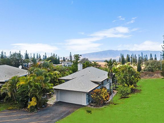 Welcome to Pukalani Fairway Estates #15, privately nestled between the 2nd fairway and 8th green. This single family 3-bedroom, 2.5-bath oasis was remodeled in 2021 along with fresh exterior paint, a new roof, and 20 owned photovoltaic panels. The upper level displays an open-concept design with two lanais to admire the breathtaking West Maui mountains and vivid green golf course views. A collection of windows and sliding glass doors allow the natural sunlight to fill the main living area and is complimented with vaulted ceilings. Avid cooks will love the remodeled kitchen’s stainless steel appliances, gorgeous shaker-style cabinetry, chic backsplash, and sleek quartz (Natural Azureite with crystals) countertops extending to the multi-seater island. The upstairs half bathroom has been updated and is conveniently located across from the new stackable washer and dryer. The lower level includes 3 bedrooms, of which 2 have sliding glass doors leading out to the backyard including your primary bedroom. This bedroom offers a tasteful remodeled bathroom with dual vanity, with a gorgeous tiled walk in shower and bidet. The secondary full bathroom is also located downstairs as well. Pukalani’s optimal climate is perfect for enjoying this home's serene backyard surrounded by numerous fruit trees such as; grapefruit, lemon, orange, three different banana trees, pineapples, lime, coffee, avocado, papaya, and three raised vegetable beds. This home is perfectly situated near hiking and biking trails, great schools and parks, and thirty minutes from Maui’s sandy golden beaches! At the end of a fun filled day, retreat back to your hot tub for relaxation. Premium perks are the attached 2-car garage, brand-new water heater, new split AC downstairs, and electric fireplace. An HOA fee of $465 per month covers common area water usage, garbage service, and maintenance of a private road. Experience everything this amazing home has by coming for a tour! This is a Residential CPR.
