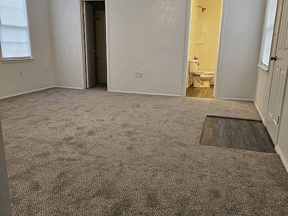 This house has had a complete make-over. Both bathrooms are completely remodeled with new tubs, surround, cabinetry, granite countertops and flooring. Two of the bedrooms have had custom built closets created with lots of room and storage. The master bedroom has a double walk-in closet. The bedrooms have new carpet and new flooring throughout. The kitchen has new quartz countertops. There is a separate den area with a fireplace and a large enclosed patio area in the back of the house. A garage (not pictured) is behind the house and adds lots of extra room for tools, lawnmower, etc. The house has a new roof, new guttering, the A/C has been serviced, we painted the front porch area and we have widened the driveway with new concrete. New fence on the West side. Tenant must be with current employer for at least 12 months. No animals or smoking. Tenant will pay for electric, gas and water. Renter's insurance is required. Tenants will pay gas, electric and water. They are responsible for upkeep of the yard. They must be with their current employer for at least 12 months. We do not allow pets or smoking. The lease is 1 year. An application fee applies. The application is given at the time of showing.