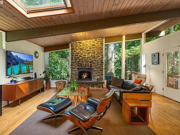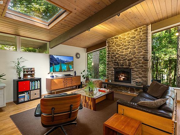 Rare opportunity to own a Mid Century architectural gem in desirable Lake Oswego. Walk into an open floor plan framed by a dramatic open beam vaulted ceiling and indoor rock garden conversation piece. Relax in this peaceful wooded setting on a half acre lot w/ large window views to trees & tons of natural light. Stylish design details throughout the home as well as a practical 4 bed/2.1 bath floor plan. Welcome to the thriving community of Lake Oswego. Enjoy Swim/Community Club easements, more!