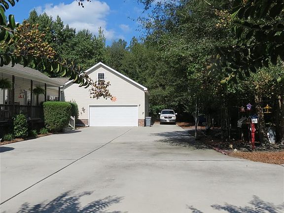 Looking for your own piece of country? Look no more! 5 acres of land with beautiful trees/woods all around! Privacy at it's best. Home is located 400 ft off roadway. L shaped ranch modular home (3 Bedrooms/3 Full Baths)with attached double car (29x28) garage with 2 1/2 car capacity along with stand-up storage over ceiling. Open living space with living room, dining room and kitchen. Large master bedroom with HIS and HERS full bathrooms and full walk through closet. Oversized shower is all ceramic tile with listello accents. Laminate flooring in living areas and kitchen, Fireplace with gas logs, Kitchen with center island & cabinets in white with stainless/black appliances, Living room, & two bedrooms exit off to full deck in backyard. 9 Ft ceilings, Laundry room with washer/dryer, Generous closet spaces, Ceiling fans in all rooms, Well water with large submersible pump, Backyard completely fenced, 90 ft concrete pad in between circular driveway, Gutters in place. Come see!!