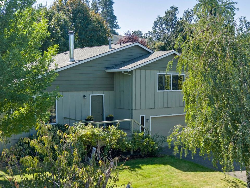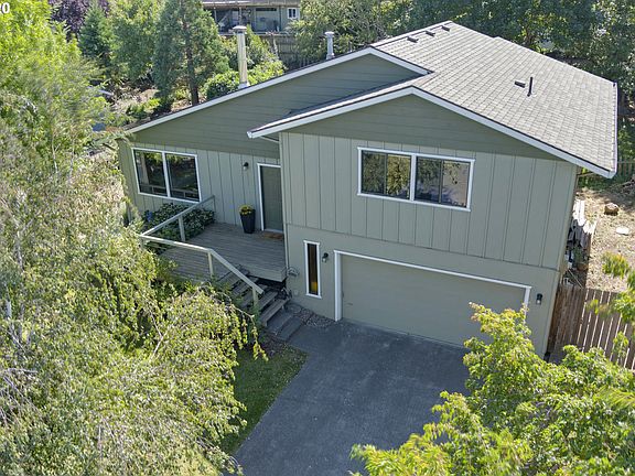Quiet street & Mt. views! Flexible common areas w/ living room & family room on main. Three bedrooms up a short flight of stairs. Master w/ ensuite bath & expansive mt. view. Newer roof, laminate flooring, remodeled kitchen w/ stainless appliances & updated bathrooms. Oversized city lot, privacy & curb appeal. Fenced backyard w/ covered patio & hot tub. Garage has space for toys & tools, plus a small finished bonus room in the back. Rare opportunity in an established Hood River neighborhood!
