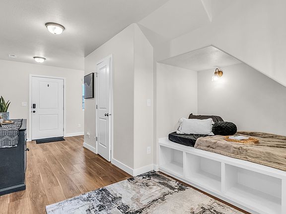 Step into this nearly new, beautifully designed 3-bed, 3-bath home in a fast-growing Syracuse neighborhood! Built in 2024, this light and bright home features an open-concept main floor with stylish black granite countertops, a tiled backsplash, and a spacious walk-in pantry. You'll love the cozy reading nook off the entry, sleek LVP stairs, and the inviting built-in fireplace. Upstairs, find all three bedrooms, including a generous primary suite with a large walk-in closet and an extended dual-head shower. Outside, enjoy the fully landscaped yard with a covered cement patio, complete with a ceiling fan, perfect for summer evenings. Smart home features, a full sprinkler system, and a location near new schools, future retail (including Costco), and quick highway access make this home a perfect blend of comfort and convenience. Square footage figures are provided as a courtesy estimate only and were obtained from County records. Buyer is advised to obtain an independent measurement.