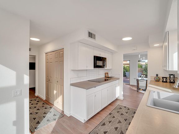 Sunsets are calling - waiting patiently for you. The natural beauty surrounding you will be a welcome experience day in & day out. This charming townhouse has been completely renovated & has glorious views of the Santa Rita Mountains. All improvements have been well thought out starting with the waterproof luxury vinyl flooring, new carpet in bedrooms, fresh interior and exterior paint, popcorn ceiling removed, new energy efficient windows and slider doors. Beautiful custom lighting throughout and plenty of natural light makes everyday delightful! The elegant and stylish kitchen offers new cabinets, new sink & faucet, natural limestone countertops, and subway tile backsplash. Both bathrooms have new vanities, faucets, toilets, and a new shower/tub in the guest bath. Absolutely stunning!