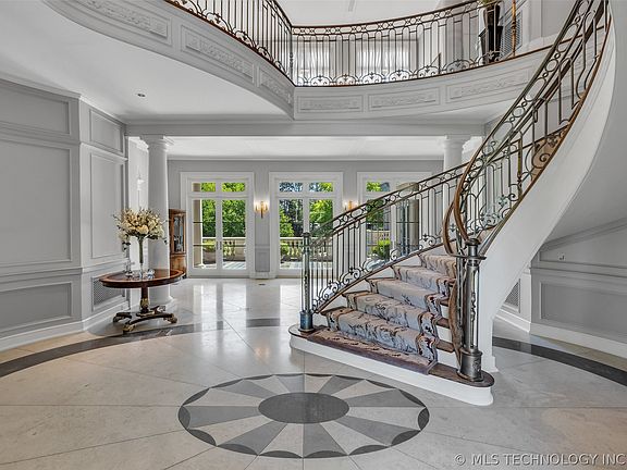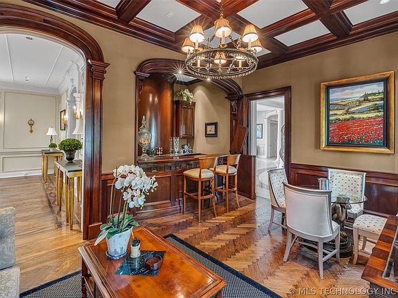 Exquisite Estate in Tulsa. Historic and timeless custom-built in Woodycrest, nestled on 2.24acres of lush, private grounds. Offering 21,812 sq ft of unparalleled luxury and sophistication. Majestic foyer. Four spacious bedrooms, each with private baths ensuring comfort and privacy. The primary bedroom features a sitting room, expansive closet and extraordinary bath retreat. Four multifunctional living areas, a theater room, entertainment room offering options for every occasion. 4 game rooms. Hardwood floors add warmth and elegance throughout. Temperature-regulated wine room and a full freezer cater to connoisseurs. Boasting six fireplaces strategically placed throughout the home, creating cozy nooks for relaxation and warmth. A private office that exudes sophistication. Floor-to-ceiling bookcases line the walls, creating an inspiring environment for both functionality and elegance. Elegant oval shaped custom designed formal dining with breathtaking Chandelier. Two full-service elevators make moving between levels effortless.Two full-service bars and 3 ice makers, 2 w/Sonic ice are perfect for hosting gatherings. The Geothermal system room and electrical room with SAVANT home showcase cutting-edge technology. Imported Molteni gas stove is a chef’s dream. Dumbwaiter ensures seamless service. Full workout room includes two bathrooms with walk-in showers, lockers and a full sauna. Direct access to the pool enhances your fitness routine. Quarters include oversized family room and full kitchen. Two large bedrooms with private baths ensure their privacy and a laundry room which resides over the detached garage adjacent to mechanical room. Inground swimming pool, surrounded by neutral-tone hardscape, invites you to relax and unwind. Multiple levels of balconies provide stunning views of the grounds on all sides of the estate and create an elegant ambiance. Porte cochere with entrance to the home. A true TULSA GEM. Located in the heart of midtown.