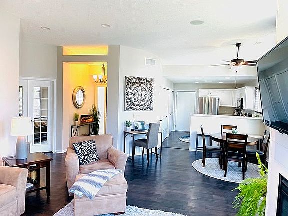 Terrific end-unit open concept floor plan in this desirable ranch townhome! Vaulted ceilings and large windows with transoms give this home a lovely, spacious and modern feel. Warm yourself by the gas fireplace on a chilly evening in the cozy main floor family room. A spacious on-suite master bedroom has a nice his and hers closet. The second bedroom has handsome french doors and would make a great office space as well. What a find with an attached two car garage in this price range! Sliding doors to an inviting patio where you can enjoy some outdoor living space and the lovely mature landscaping of the development. This home has been updated in last 2 years with new appliances. Fabulous opportunity!