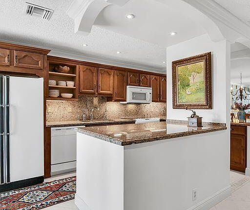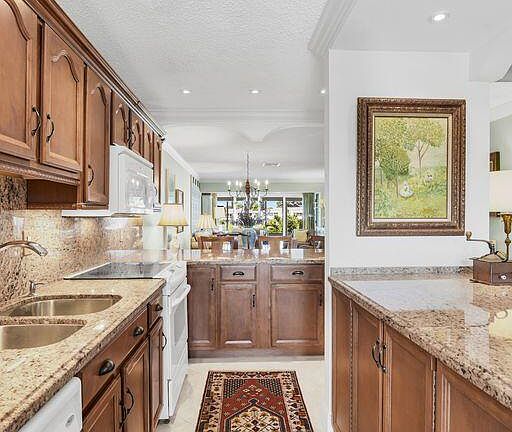 PINES OF DELRAY WEST. Exceptional renovated corner lakefront 1167 square foot 2 bedroom- 2 full bath condominium. . Sweeping water views from the living room and from the fully ''slider- windowed'' 245 square foot tiled wraparound patio. Elegant Gambini Appia Avorio 20'' x 20'' tile on the diagonal in most rooms, open island kitchen with premium granite countertops and backsplash, real wood cabinetry, all PGT windows with accordion or roll-down shutters, 2.5 ton ac system, tankless hot water heater, 3 paddle fans, hidden under-island side by side washing machine and dryer and crown molding throughout. The wraparound patio -with sliding glass door access from the living room - has 7 sets of 56 inch tall slider windows for year round usage. PROPERTY FEATURES: 2811 SW 15TH STREET APT 204 DELRAY BEACH FLORIDA