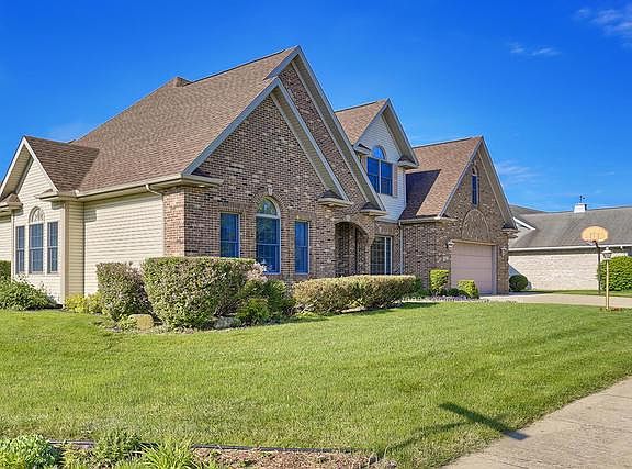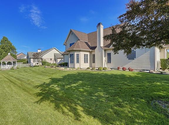 Beautiful home, inside & out, with a lake view! Offering approximately 4,300 finished sq.ft., there is room for all your needs from every day living to entertaining. Natural light floods the living room with a vaulted ceiling. The soaring 2-story family room with an open staircase and gas fireplace is adjacent to the expansive eat-in kitchen boasting oak cabinets, tile floors, new wall-oven/microwave installed and new stainless steel refrigerator and dishwasher coming plus a sunroom with views of the lake. Retreat to the first-floor master suite with vaulted ceiling, large windows, walk-in closet and a full master bath. Three generous sized bedrooms, full bath plus a large bonus room/office complete the second floor. The full basement is partially finished with a large rec room with a wet bar, full bath, game area plus storage space. Enjoy more lake views from the back patio or the gazebo. Oversized garage plus an extended 3rd bay. New roof. Don't miss this one, call today to schedule your private showing!