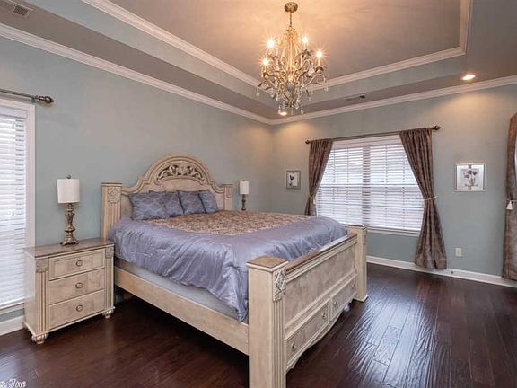 Two-story gem in an excellent West Little Rock location! Living room features gas log fireplace and vaulted ceilings. Lots of trim and crown molding throughout. Beautiful floors with hand-scraped look throughout downstairs. Kitchen features white cabinets, quartz counters, stainless appliances, double oven, & gorgeous wooden breakfast bar. Master suite w/ patio access, tray ceiling, double sinks, walk-in shower, spa tub, & huge walk-in closet. Upstairs is a full bath & 3 bedrooms w/ great built-ins.