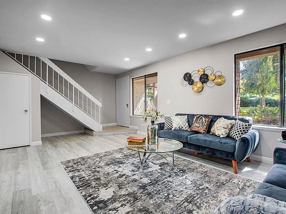 This newly renovated townhome in the sought-after Tanglewood community of coastal Carlsbad is both stylish and inviting. Boasting 3-bed 2.5- bath, this home features fresh paint, and luxury waterproof vinyl flooring throughout. LED lighting enhances the ambiance, while the bathrooms and brand-new kitchen with custom cabinetry, quartz countertops, and stainless-steel appliances add a touch of elegance. Take in the serene parklike view from the generously sized primary bedroom and the living room. With a 2- car attached garage, storage space is plentiful and conveniently opens to a private yard. The Tanglewood community provides amenities such as 2 clubhouses, 2 swimming pools and spa, tennis courts, playground, and walking trails. Located close to Hwy 78 and I-5, this home is just a short drive away from the beach and Carlsbad Village, making it the perfect location for both relaxation and entertainment.
