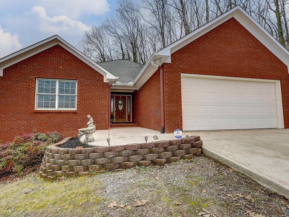 Welcome to this charming retreat boasting the serene beauty of Lake Guntersville. This stunning full-brick home, with its first-time debut on the market, offers the rare opportunity to be just steps away from the Guntersville walking trails. Meticulously maintained by its sole owner, this home features 2 spacious bedrooms with walk-in closets and 2 full baths. Convenience is key with two separate driveways: one leading to the first level with a 2-car garage and another to the basement/workshop with a 1-car garage and 1/2 bath. The basement/workshop is every hobbyist's dream, offering endless opportunities for expansion or creative pursuits. All kitchen appliances have been updated.