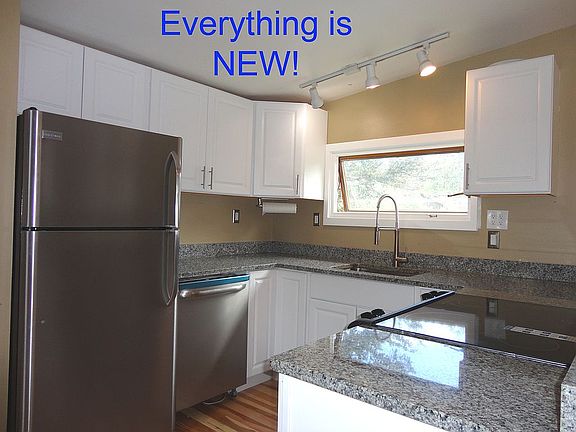 Here's your rare opportunity to live above Downtown Evergreen where you can walk to everything! This cool 1 bedroom/1 bathroom cabin was just completely remodeled. Here is a list of all NEW features: Hardwood floors*Kitchen cabinets, slab granite, fixtures, stainless steel appliances*Woodstove*Hot tub*Washer/Dryer*Bathroom tile, vanity, fixtures, windows. 154sf South facing deck to watch the Rodeo Parade or listen to Bear Creek. Metal Roof makes for low maintenance. Covered and Fenced Dog Run. Huge crawlspace for storage that a person can stand up in. Recorded Easement for a parking space in front of home. Natural Gas and Public water/sewer! Great starter home or a killer investment rental. With limited inventory in the $200K's, this cabin may be snatched up quick so move fast.