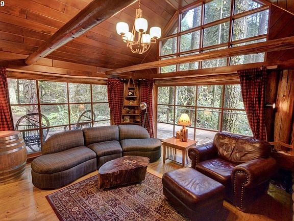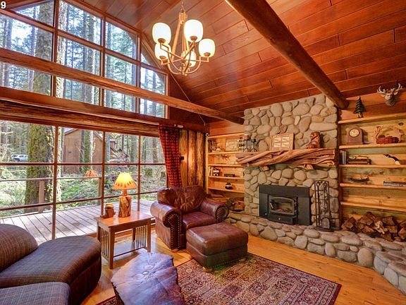 Ted's cabin is a comfortable lodge like environment in the Mt. Hood National Forest on leased land. The living area is filled will knotty pine, wood floors, high vaulted ceilings and river rock fireplace. The master bedroom is on the main with it's own fireplace too. Loft sleeping over the living room area has two beds, plus third bedroom. A new septic system installed. Only 15 minutes to skiing. One hour PDX.