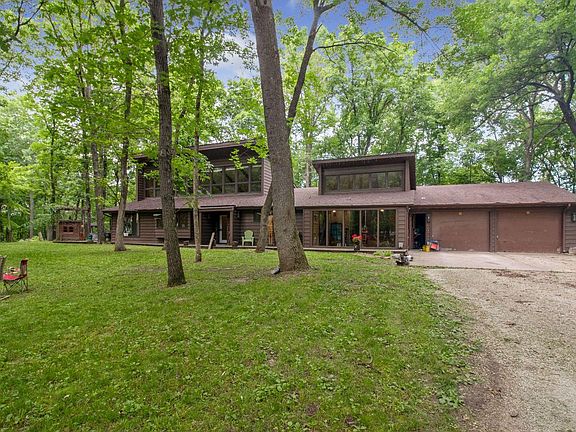 This acreage has tons to offer Over 3600 sq.ft. Ranch home with 3 bedrooms and 2 baths. Abundant windows for natural light enthusiasts on the entire front of this home. Large open kitchen, formal dining room, and a lofted area upstairs for all types of hobbies. Almost half of the home is built out of concrete, they don't build them like this anymore 744 sq.ft. attached garage which is a very oversized 2 car Plus there is another detached shop/garage, same size with electrical service, insulated and fireplace ready. The 4.86 acres is full timber, walking/riding paths, hunting ground and your kids playground of all types This home is any outdoorsy family's DREAM Super private location.