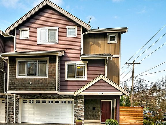 BEAUTIFUL move-in-ready West Seattle townhome! Rare 2-car garage. This light-filled 3bd/1.75ba home offers a spacious open floorplan. Main level features a cozy gas fireplace, hardwood flrs, S/S appliances & granite counters. French doors open to an office or possible 3rd bedrm. Upper level offers 2 generously sized bedrooms w/vaulted ceilings & great closet space. NEW fenced side yard offers privacy! Easy downtown commute via W. Seattle Bridge. Close to gym, coffee shop, Delridge Park. NO HOA.