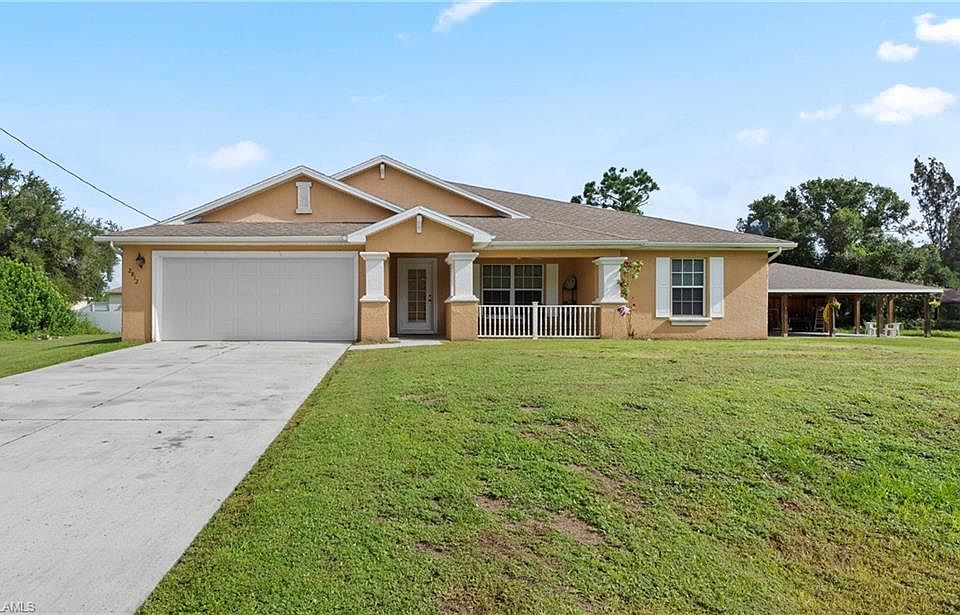 Beautiful 3 bedroom 2 bathroom plus den CBS block construction pool home, sits on a 1/2 acre lot. At 2000 sq ft this home boasts ceramic tile throughout and carpet in all bedrooms, the den can serve as a 4th bedroom also. Large living room and eat in kitchen, large breakfast bar seating area. Complete whirlpool stainless steel kitchen appliances with maple cabinets corian counters and lovely glass back splash. Both master and main bathrooms have double vanities and the master bath has a separate tub and shower. Enjoy living in paradise outside in your huge under truss screened lanai over looking your large 33'x14' pool with Jacuzzi spa and waterfall feature. For those large families and if you enjoy entertaining there's also a large 32'x32' fully permitted gazebo, makes for endless possibilities to ones imagination. This home comes with hurricane impact windows throughout and storm shutters for the sliding doors. Close to shopping, restaurants , schools, banks and church's. Your 10 minutes away from Jetblue park, home of the Boston Red Sox spring training facility and 15 minutes away from Ft. Myers International airport. A must see, call today to schedule your showing appointment!