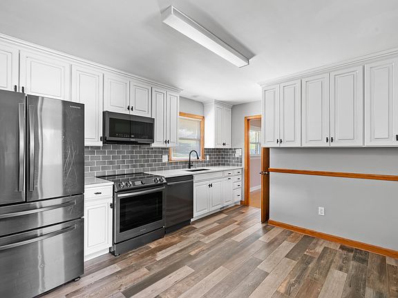 Welcome to this 3 BR, 2 Full Bath, updated Brick Ranch on a quiet cul-de-sac street. You'll love the updated Kitchen with new cabinets, quartz counter tops, ceramic tile backsplash, stainless steel appliances and flooring. Entry level bathroom with large ceramic tile step-in shower, vanity and tile floor. Living room, bedroom and hallway features oak hardwood floors. Replacement windows, Basement with finished Rec Room, large ceramic tile walk-in shower with tile flooring and updated vanity; Bar top with refrigerator for entertaining; Large unfinished area with laundry and sink, plenty of storage. Carport. Natural gas heat. Energy efficient solar panels. New roof 2024