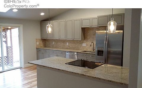 Beautifully updated and open ranch home on quiet street near the foothills. Master has large walk-in closet and 3/4 bath. Hickory wood floors, beautiful sleek & modern cabinets with soft close drawers and doors, custom bath tile and granite everywhere. Stainless Steel appliances, new carpet, new light fixtures, wood fireplace and new interior & exterior paint. Great neighborhood close to schools, Horsetooth Reservoir, Spring Canyon Park and many running/hiking trails.