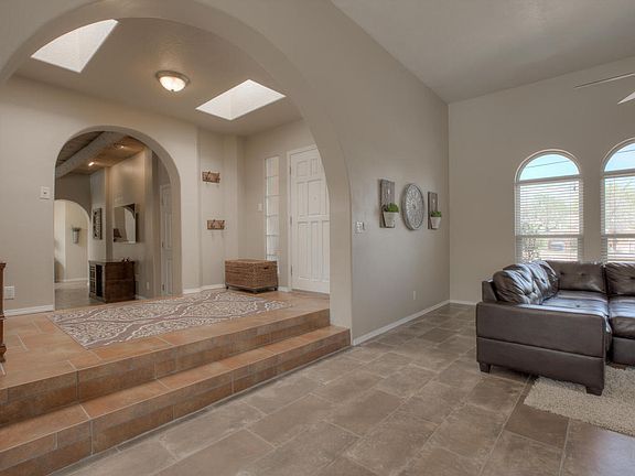 Don't miss 3D tour in Virtual tour link!! Beautifully remodeled North Valley home near the Bosque! 2 living areas: 1 with 16' celings and two way gas log fireplace to formal dining room, 1 with w/wood viga ceiling and open to the completely remodeled kitchen. Large master suite with separate shower, dual sinks, private commode, and large walk-in closet. Secondary bedrooms have big closets with built in storage. Large backyard with shade tree, 2 patio areas, and side access for storage of your RV/trailer/toys. Refrigerated air plus new flooring, paint, windows, stucco, cabinets, counters, lighting, and landscaping! This one is move in ready, with modern updates and SW charm!