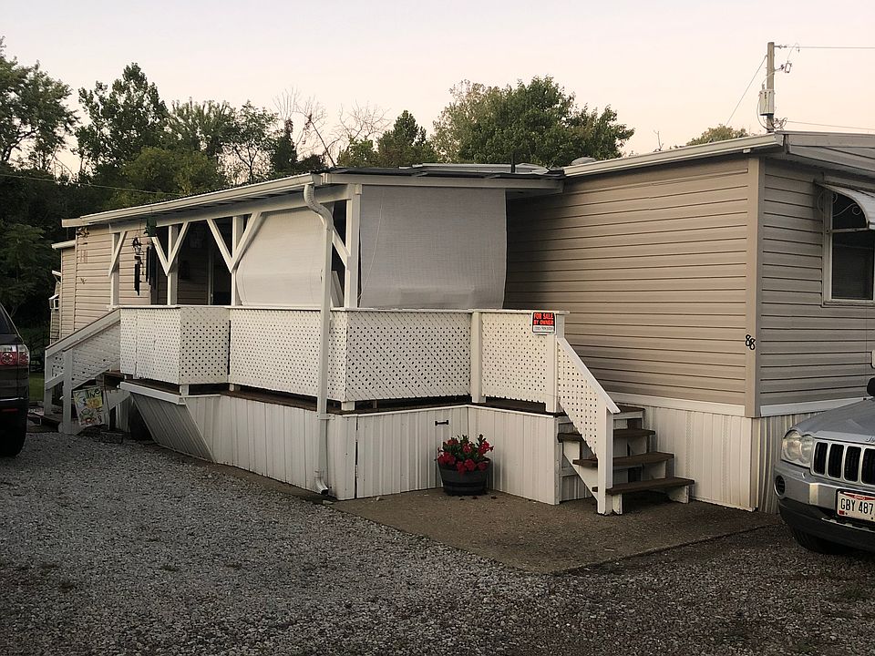 A three bedroom mobile home for sale.Had a bath and a half. Has a deck with roof and electric plug in’s. Electric on the side of the home. Two sheds. both with electric. The one has 220v, AC and heat. The home has newer siding and windows. Windows pull in to clean. Updated kitchen, bathroom and living room. A nice yard. Woods behind. Private lot. Lot fee $300 month.