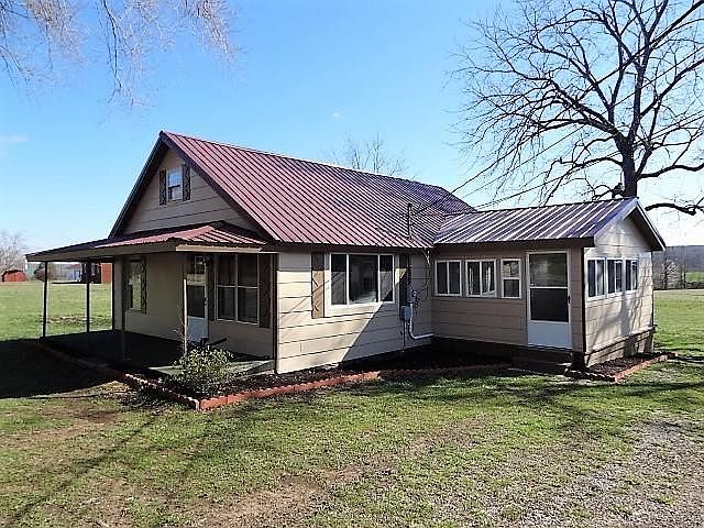 Sitting on 2.5 acres 2 bdrm, 1 bath plus bonus room, newer HVAC, in 2017 the home was installed with a new metal roof, flooring and windows. Master bdrm on main level, large storage shed. House has fuses instead of breakers.