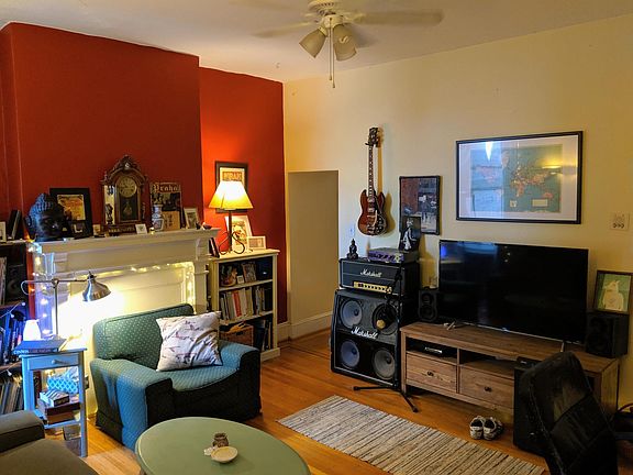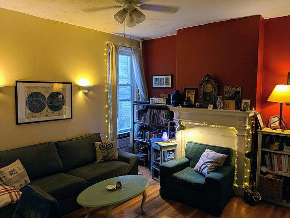 1 bedroom, first-floor apartment in charming two-unit row house in Charles Village is available beginning this September 15th (or slightly sooner with options for temporary storage beginning sooner if necessary) on the 2800 block of Guilford Avenue on a 12 month lease. Apartment is the 1st unit in a 3-story 'painted lady' row home with a fenced backyard and front porch. Apartment is rented unfurnished. Rent is $1,000 per month plus all utilities (gas, electric, water). Apartment features 1 bedroom, full-sized kitchen with new hardwood counters, bathroom, and living room. Tenants have access to a large amount of basement storage space (in part because the unit itself does not have a great deal of closet space). Backyard is shared communally, but this unit has largely exclusive use of immediate back patio area (good for grilling, a patio table, etc.) Steam radiator heat. House features brand new gas furnace, includes free use of washer and dryer in the basement. House has lots of character, hardwood floors, and backyard features outdoor benches and herb garden, fruiting paw paw trees and elderberry, and more. House is on a great block in Charles village (Bike boulevard), walking distance to the shops on St. Paul Street, Johns Hopkins University, Station North, and Remington neighborhoods. New bakery opening across the street in the Fall. Permit-free on-street parking, and one parking place in back of property but is shared communally with upstairs apartment tenants. Pets will be considered on a case by case basis (limit 1). $30 credit check with application. Tenant responsible for all utilities (gas, water, electric, internet). Internet is currently shared with other unit's tenants.