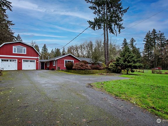 Country living close to town! Bring your hobbies! Updated, well maintained rambler w/cedar siding situated on 6+ fenced acres bordering Woodard Creek; finished 2-car attached garage/shop with separate studio apartment overhead (built 2008). Features formal living room w/gas FP, sunroom area; formal dining; kitchen remodel in 2020 w/new appliances, cabinets, countertops; adjacent utility rm; primary bedroom ensuite, 3 add’l bedrooms + den; newer boiler system for radiant heat; CA closet systems; extensive storage. Trex deck like new, offering huge space for outdoor events. Barn in “as is” condition; 16x25' building w/power/no water (2012). Close to schools, shopping, I-5 access.