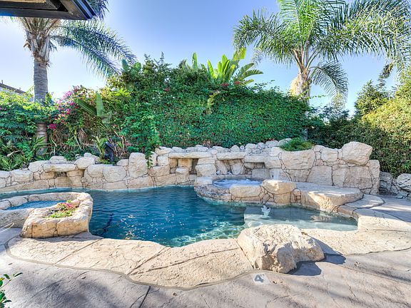 This wonderful pool home is located in one of the most tranquil and best locations in North San Clemente and is surrounded by 2+ million dollar homes. Quiet interior corner lot on cul-de-sac street, located across from bluff front homes. Blue water, horizon and beautiful sunset views from upper level of home. Formal double door entry with custom glass doors and generous living room with fireplace. Oversized dining room with french sliding door leads to beautiful, private backyard which features sparkling pool and spa with waterfall and glass rock fire pit, generous wrap around patio with outdoor dining area, built-in barbecue and bar with two palapa umbrellas. Highly upgraded kitchen with center island with prep sink, granite countertops, custom wood cabinetry with pull out shelves, built in refrigerator, upgraded stainless steel appliances including double oven, dishwasher, trash compactor, custom lighting, and convenient pass thru counter to living room. All three bedrooms are oversized - one on main floor with sliding door to backyard, and two are set up as master bedrooms with private bathrooms, and primary master suite features view balcony. Fantastic oversized bonus room with panoramic view features wet bar, fireplace and built-in tech center/home office in hallway. Additional features are custom built-in cabinetry & an inside laundry room adjacent to garage. Enjoy the cool ocean breezes and close proximity to the Pacific Ocean and the beach. Incredible value!