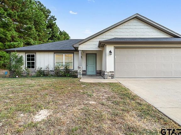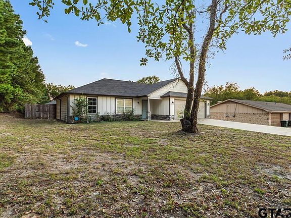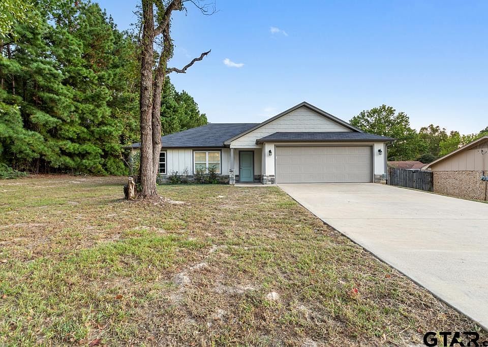 Cute house in a prime location close to everything in Tyler. Less than 10 minutes from shopping, dining, hospitals and more! This 2018 home with 1,365 square feet covers all your needs. Living room is spacious with a tray ceiling, and open concept to kitchen and dining area. Breakfast bar provides additional seating for kiddos or entertaining. Wood-look vinyl plank floor in main living and kitchen area is great for easy maintenance. Kitchen has white cabinetry, granite countertops, stainless steel appliances including glass cooktop range and dishwasher. Window over the sink is ideal for watching children or pets play outside in the fenced yard on nearly a quarter of an acre. Primary bedroom and bath are split. Primary bath has separate tub and shower, double vanity, and a walk-in closet with built-ins. Utility room and access to the two-car garage are on the same side of the house. Two guest bedrooms are off the kitchen, and share the guest bath in the hallway. Current colors and finishes. Pretty house. Just needs you!
