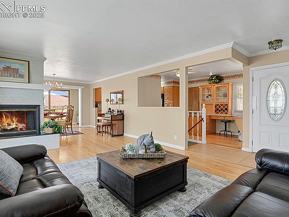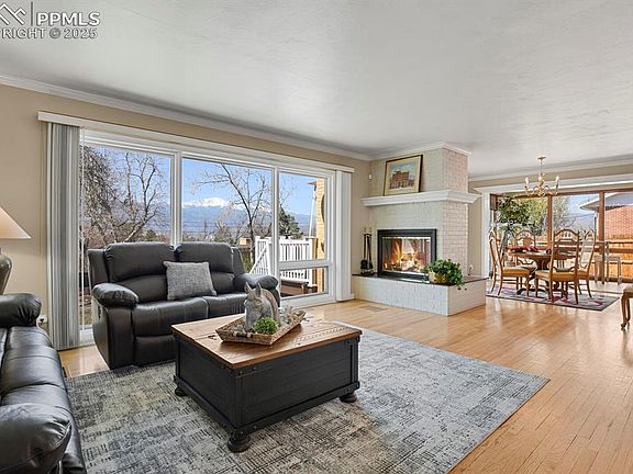 Do you want to have a Pikes Peak view from the moment you walk into your house? Look no further! When you enter the house, you will see the floor to ceiling windows with Pikes Peak framed in it. If you go out the large (20’ x 20’) trex deck, you will love the view and serenity of this private backyard. Too hot? Just roll out the electric awning for shade! This home is located in the highly desirable Country Club neighborhood. It is close to hiking at Palmer Park, shopping, schools, and hospitals. This well maintained home boasts a large living room, dining room, sunroom, kitchen desk, and an upgraded kitchen. So much storage with pullout shelves, granite counters, spice rack, and black appliances. Walk down the hall, with beautiful hardwood floors, to see a full bathroom, 2 bedrooms (hardwood under the carpet), and a bedroom with an ensuite 3/4 bathroom. You can have it all when you go downstairs to another huge craft/office/desk and a large family room with a wood fireplace. You can walk out to the backyard from this level! The primary bedroom is warm and inviting as you go past the French doors. You get the most for your money when you see the HUGE walk in closet. Going back to the laundry room with a sink and folding table, you won’t believe all of the unique storage closets. Impress your friends with a 4 CAR TANDEM garage to keep all your toys in! This garage is insulated, heated, has a utility sink, and skylights! This garage is one of a kind! This home has quality that you will appreciate. Here is a list of the big improvements in the last 5 years - 2020: furnace, water heater, and AC. 2022: new rear fence, roof, and trex deck.